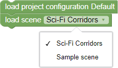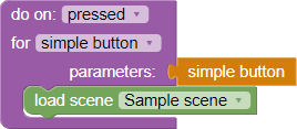 Go to the Blockly editor of the start scene. Add a button click event, add the “Load Scene” block to the event, select the second scene. Save your changes