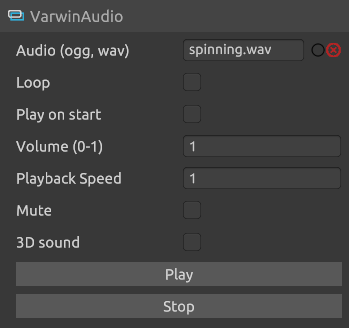 • Play on start - starts the audio file immediately after the scene is initialized