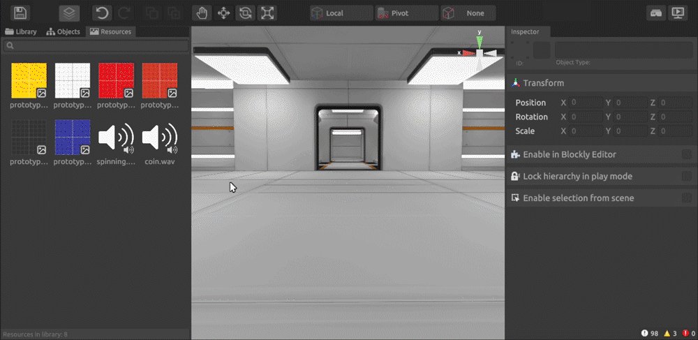 After importing an audio file into the platform resources, it will appear in the Desktop editor on the “Resources” tab