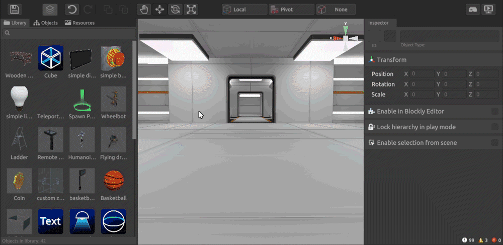 The main interaction with the audio file takes place inside the built-in Blockly logic editor