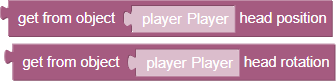 These two functions return the position and rotation positions of the player’s head, respectively, as vector data in world coordinates