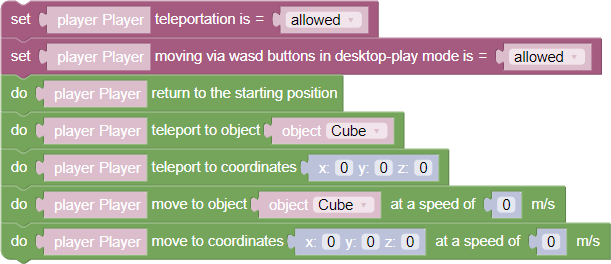 - Teleportation allowed/forbidden - the block that allows or forbids the player to use teleportation through the scene