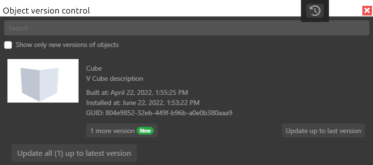 The purpose of this innovation is the ability to update any object or scene template in the library and at the same time preserve the invariance of the work of projects, that is, preserve their integrity and performance. Read more in the article “Versioning objects”