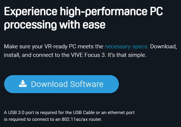 Register on the Vive website a. In the top right-hand corner of the human icon, point to it and press Login b. Fill in the fields and confirm the email by entering the set of numbers that came to the email you specified when you registered c. Open the website to download the PC version of VIVE Business Streaming d. Scroll below and find the Download software button to download