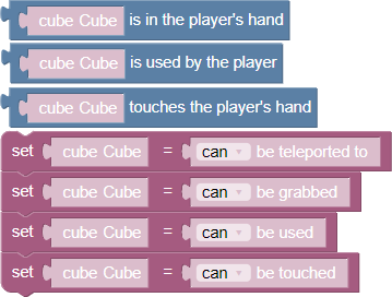 - Object touches player’s hand - returns true if the object is touched at the moment. Otherwise it returns false