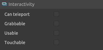 - Can teleport - the parameter that defines the player’s ability to move to the surface of the object with the help of teleportation mechanics in VR, or the player can walk on the object using the keys in the Desktop view mode