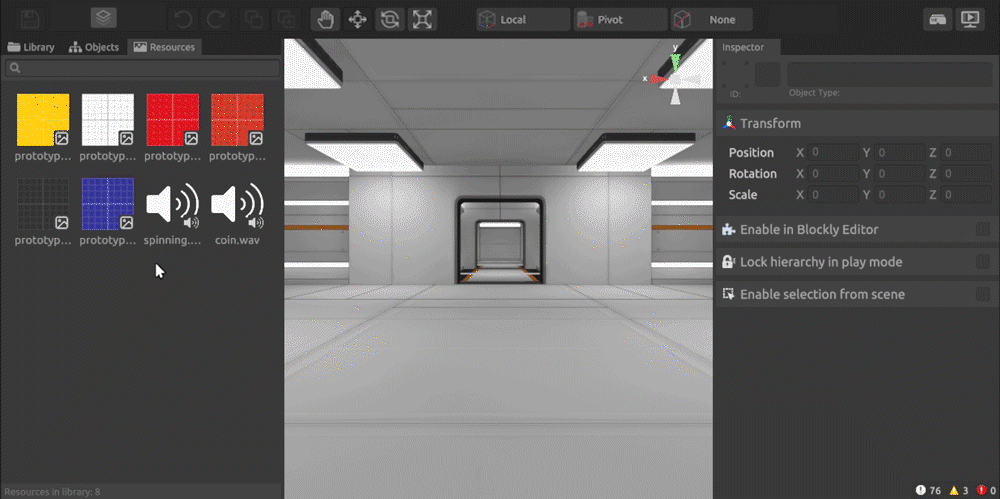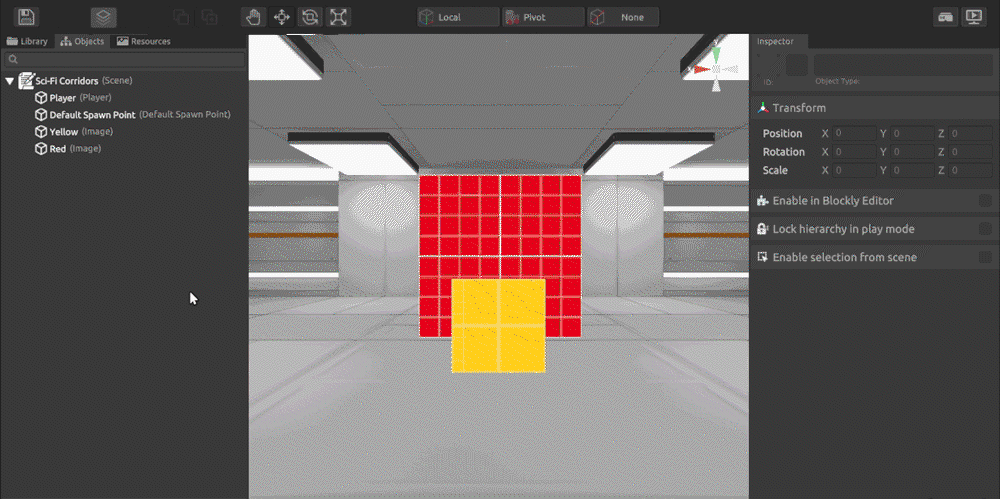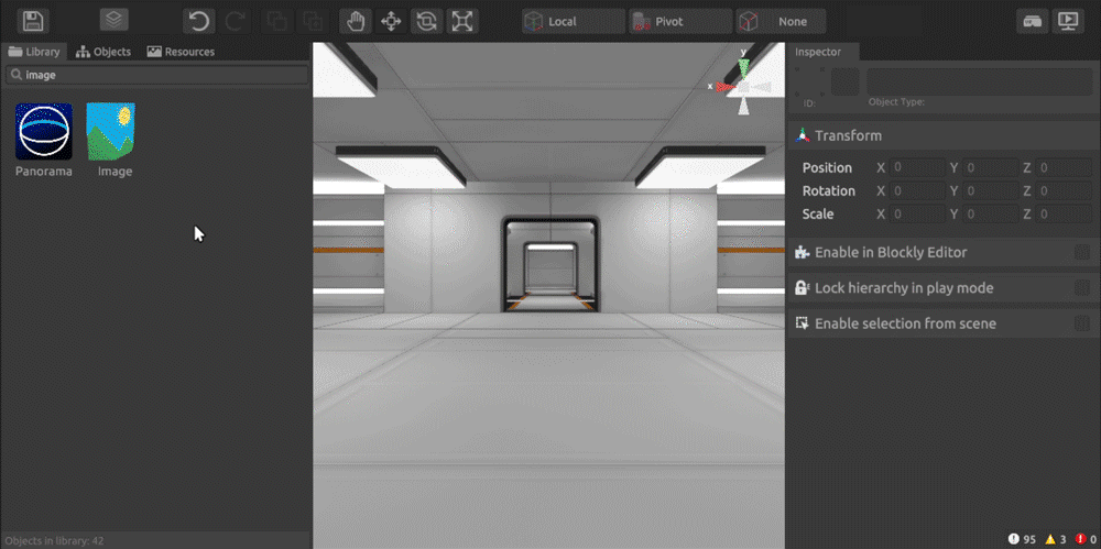 VARWIN DOCS Varwin XRMS Objects in the Varwin library Standard objects in the Varwin library Current: Image Image List of chapters After importing the images will appear in the Desktop editor in the “Resources” tab. Learn more about downloading resourcesThe images are marked with a characteristic iconHow to add an image to the sceneSimply drag the image from the “Resources” tab to the sceneFirst, add a “Picture” object to the scene, then assign a picture to itSetting up the “Picture” object in the scene editorImage - field for selecting a resource;Color - change the color tone of the image;Scale - a parameter similar to the scaling, but scales the object proportionally at onceReflect horizontally - reflection of image resource along the horizontal axisVertical reflection - reflection of image resource along the vertical axisRendering order - images with larger values will be rendered over images with smaller values even if they are physically further away Supported formats: jpg, png, bmp Illuminance - if marked, the image will participate in the illuminationBlocklyThe main interaction with the image takes place inside the built-in Blockly logic editorThe default blocks for the object are of the type variablesVariablesFor all properties except image and color, the corresponding paired blocks are defined - “set” and “get”Rendering order - images with large values will be rendered on top of images with smaller values, even if they are physically further away ×