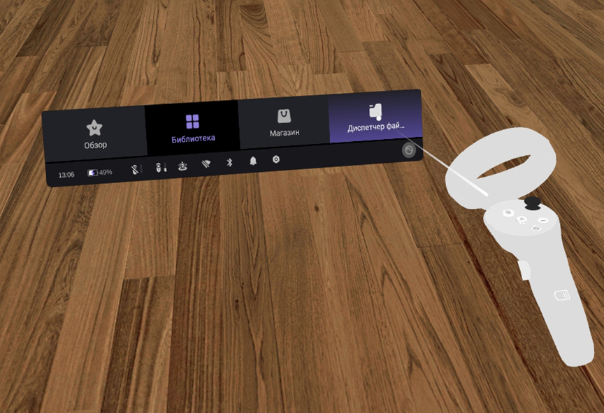 - Подключите гарнитуру USB кабелем к компьютеру и запустите SideQuest. Вы увидите сообщение о том, что необходимо разрешить доступ к файловой системе гарнитуры
