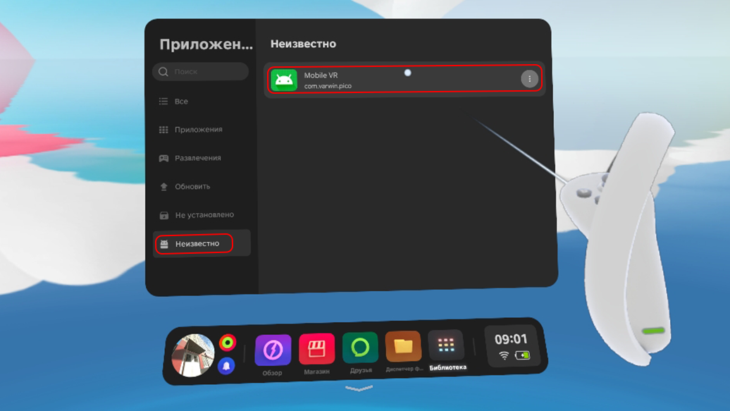 - Далее, найдите установленный мобильный клиент в меню "Библиотека" > "Неизвестные источники" и запустите