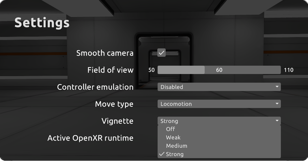 When you select the Locomotion Move mode, an additional Vignette option appears.