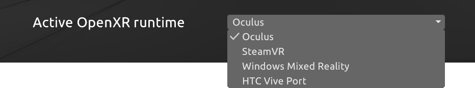 The OpenXR runtime environment is the access standard required to run a project on a VR headset.