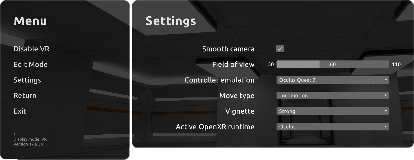 The Vignette darkens the edges of the image and helps make the above method of movement comfortable for the user. Customization of the degree of darkening is available, depending on personal preference.