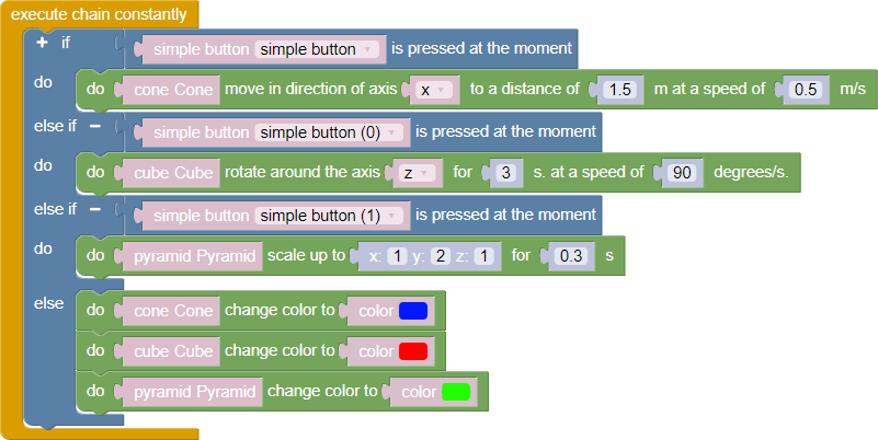- Now press the button below the pyramid. The pyramid began to rotate around a given axis and the sequential action will end only after the button is released