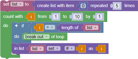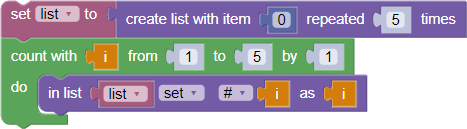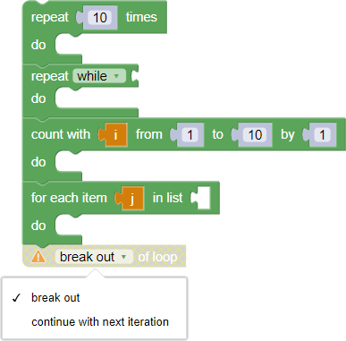 A set of blocks that allow you to set a set of actions with a predetermined number of repetitions, as well as for bypassing lists