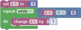 The loop with the counter will be executed while the variable i is less than 5. In this case, after each step, the variable i will increase by 1