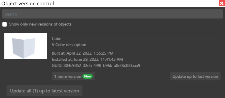 Object name input field- a field that allows the user to sort the list of all objects with two or more versions by name