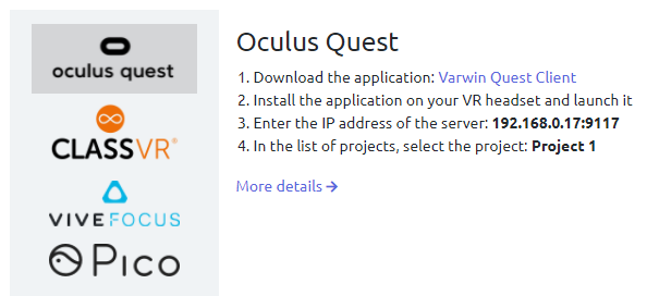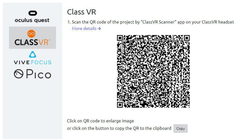 Use the Scanner app on your ClassVR headset and scan the project's QR code. Once scanned, the project will immediately launch on the headset