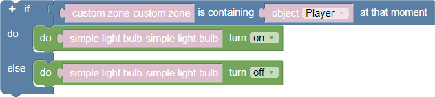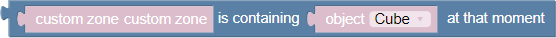 A logic block that sends a true or false value, depending on whether the selected object is in the specified zone or not