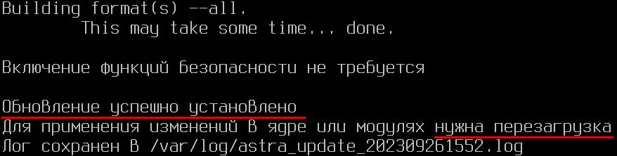 sudo apt -o "Acquire::https::Verify-Peer=false" --allow-unauthenticated update -y && sudo apt -o "Acquire::https::Verify-Peer=false" --allow-unauthenticated upgrade -y && sudo apt autoremove -y && sudo astra-update -A -rCODEЭта команда запускает обновление системы из репозиториев, которые мы указали в пункте 4, до актуальной версии