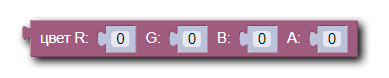 Блок с вводом значений цвета в формате RGBA, где R - красный, G - зеленый, B - синий а A - альфа, указывающий параметр прозрачности