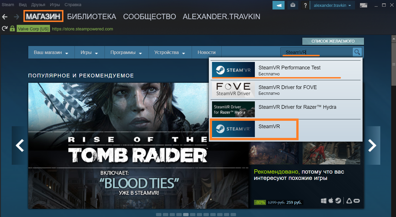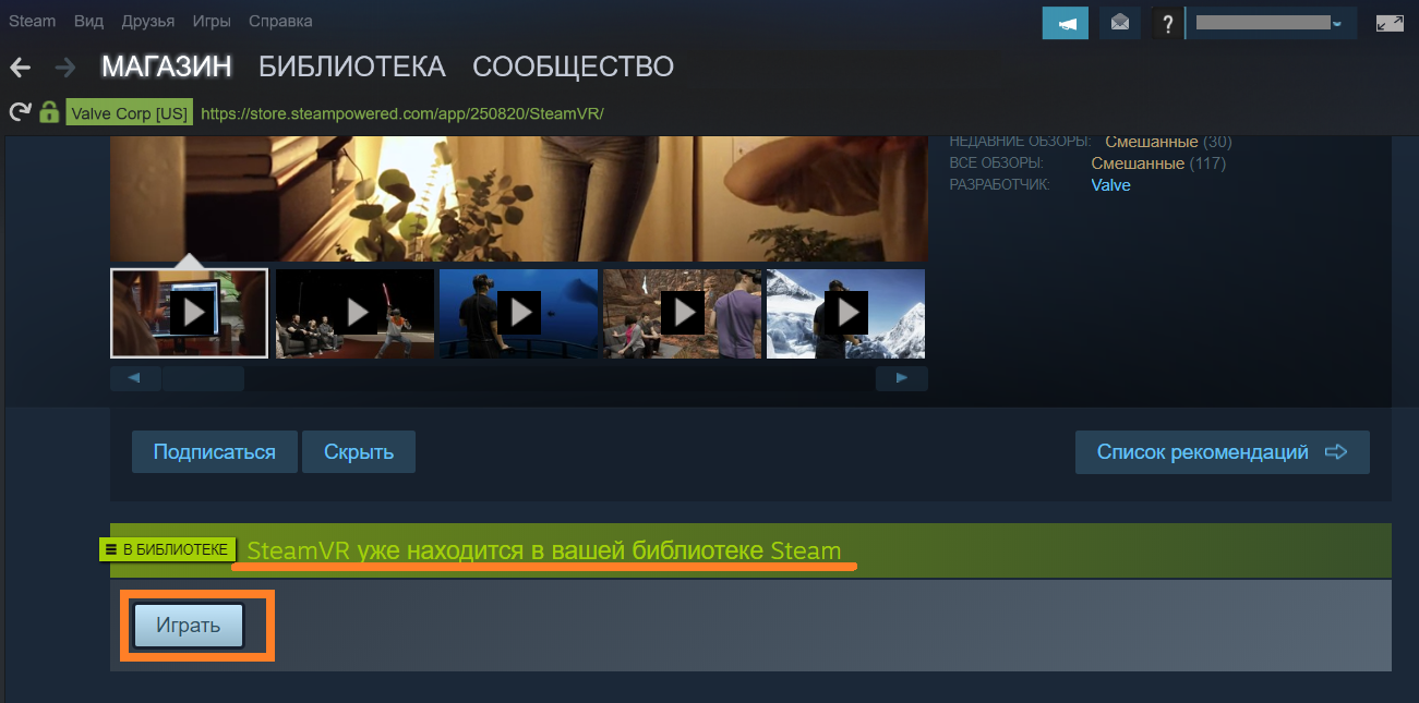 VARWIN DOCS Varwin XRMS Установка и запуск Varwin XRMS Current: Установка Steam и SteamVR Установка Steam и SteamVR Установка SteamУстановите онлайн-сервис Steam по ссылке на программу установки из официального источникаВойдите в свой аккаунт на Steam. Если у вас нет аккаунта, зарегистрируйтесьУстановка Steam VRВ установленном на ваш ПК Steam откройте раздел «Магазин» и наберите в строке поиска SteamVR без пробела При необходимости проверьте соответствие вашего ПК требованиям программы с помощью утилиты SteamVR Performance Test Перейдите на страницу SteamVRВы увидите сообщение о том, что программа находится в вашей библиотеке. Установите SteamVR, нажав кнопку «Играть»Установите SteamVR, следуя указаниям программы установки ×