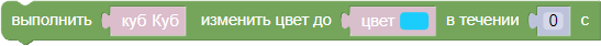 Запускает изменение цвета объекта на выбранный в течение заданного времени. При использовании блока с объектом, имеющим текстуры, блок придаст ему выбранный оттенок