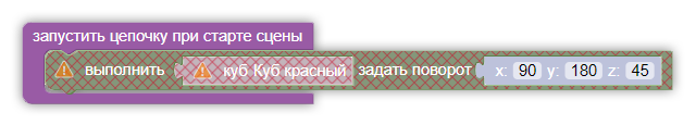 - Блок события, включающий в себя конструкцию из блоков действия над тремя объектами: конусом, кубом и сферой