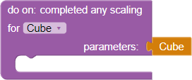 1. Completed any scaling for Object - the event is triggered when the specified object completes any scaling. Scaling is considered completed if the object reached the target scale or if the scaling was stopped by the corresponding block. The object, for which the event was triggered, is passed to the parameter