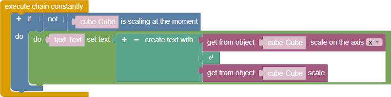 Specifying three axes for scaling in the Blockly editor is equivalent to specifying them in the scene editor in the inspector in the object parameter “Scale”