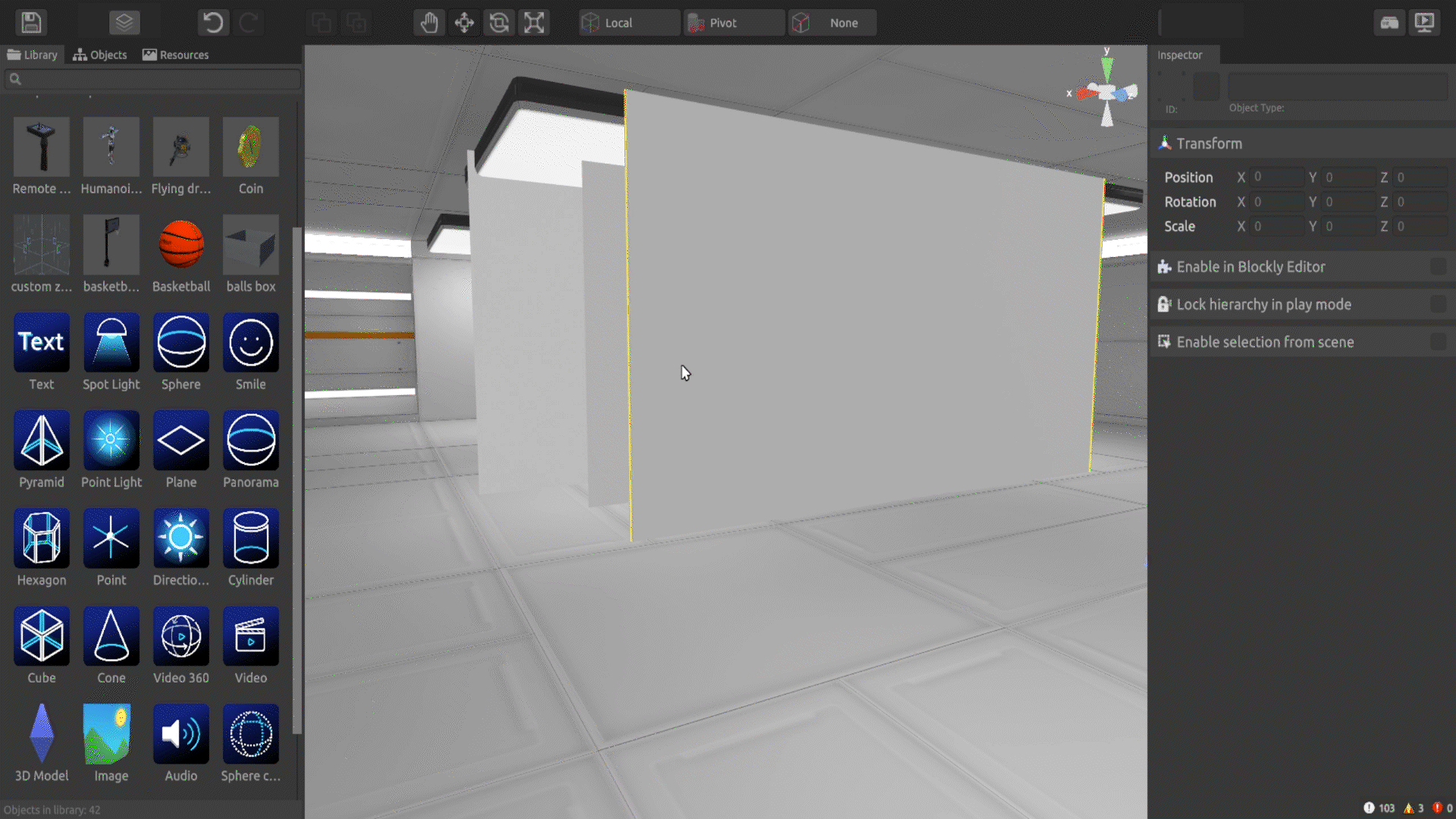 left mouse buttonover it to move the object - Move the object around the scene - it will snap to the nearest planes