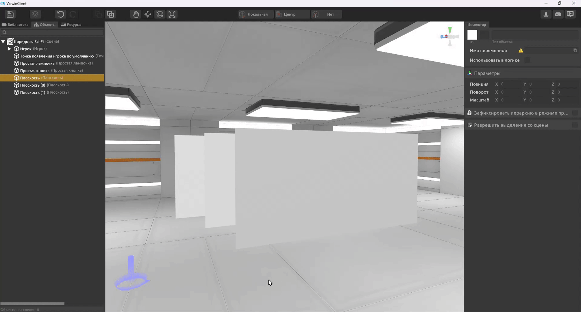 левую кнопку мышинад ним, чтобы переместить объект - Перемещайте объект по сцене - он будет привязываться к ближайшим плоскостям