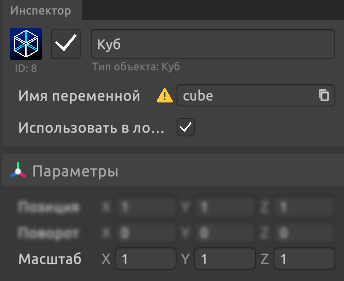 Указание трех осей для масштабирования в редакторе Blockly равноценно указанию их в редакторе сцены в инспекторе в параметре объекта «Масштаб»