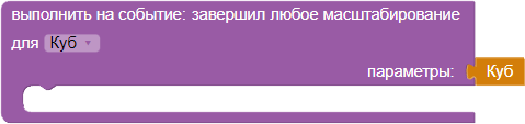 Событие срабатывает, когда указанный объект завершает любое масштабирование. Масштабирование считается завершенным, если объект достиг целевого масштаба, или если масштабирование было остановлено соответствующим блоком. В параметр передается объект, для которого сработало событие
