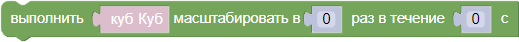 Масштабирует объект в заданное количество раз в течение указанного времени. Изменение происходит относительно текущего (на момент срабатывания блока) масштаба объекта