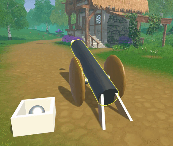 Собираем пушку из цилиндров, сфер и кубов, также создаём и настраиваем одно ядро.