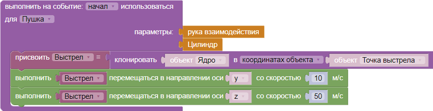 Зелёные блоки отвечают за полёт ядра.
