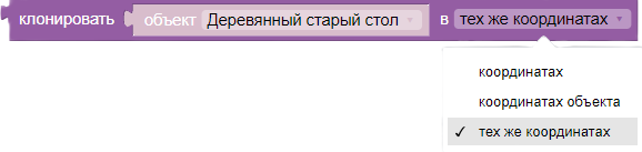 - тех же координатах - берутся координаты объекта, который во хотите клонировать