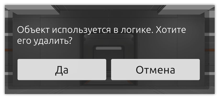 При удалении объекта с 3D сцены, пользователь увидит сообщение о том, что данный «Объект используется в логике. Хотите его удалить?»